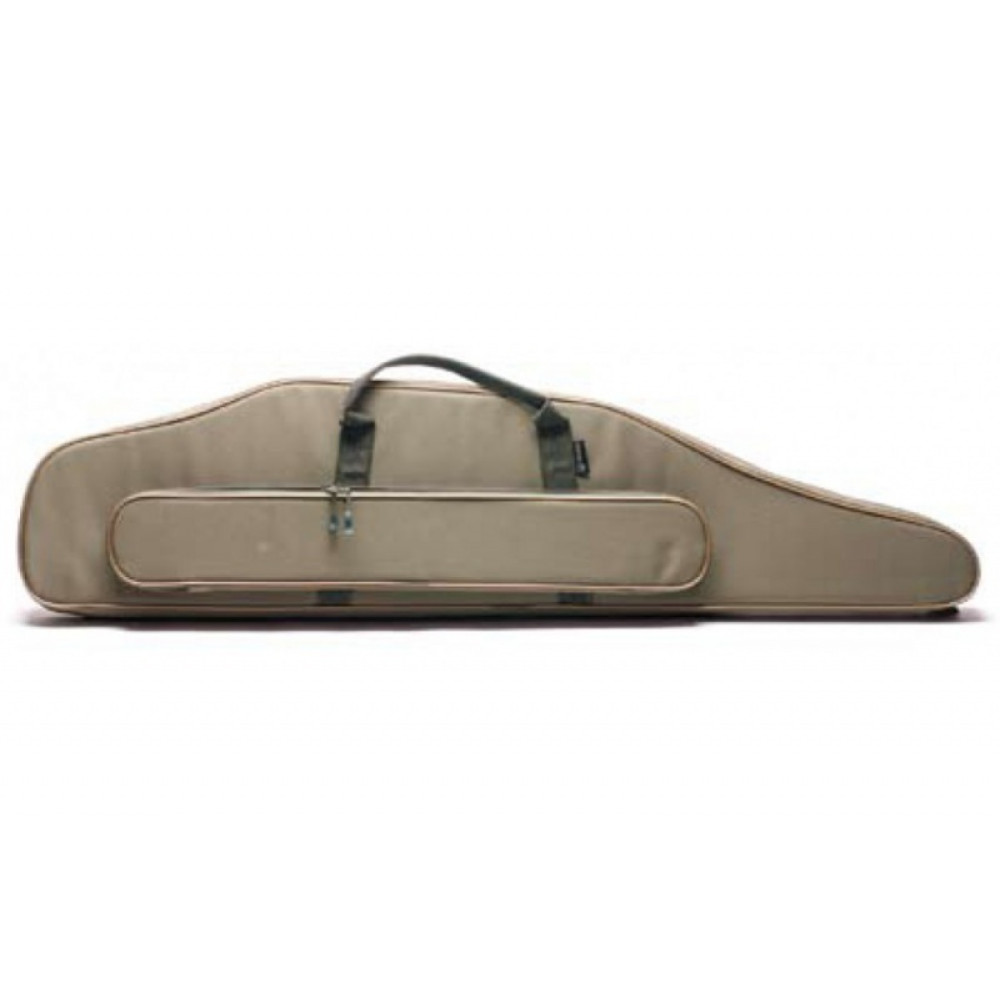Чехол выполнен из плотной и износоустойчевой ткани. Чехол содержит поролон и подкладку смесового материала, которые защищают оружие от царапин и других механических повреждений. Также имеется вшивной сумочный кант-кедер (полиэтилен) для придания формы каркасу изделия, для увеличения прочности шва, и в качестве декоративного элемента. Переноска футляра для оружия осуществляется ручками, которые выдерживают большую нагрузку, так как прошиты вокруг сумки. С одной стороны чехла находится регулируемый по длине ремень, который позволяет переносить чехол не только за ручки в горизонтальном положении, но и на одном плече вертикально. Ремень и ручки выполнены из прочной нейлононовой стропы (Paracord). Закрывается основное отделение на молнию с двумя замками, которая частично защищена от дождя и грязи специальными накладными тканевыми планками. Также на чехле имеется специальная петля, которую удобно использовать при хранении чехла, подвешивая его. На внешней части чехла имеется карман для сменного ствола. Карман также содержит поролоновую прокладку и закрывается на молнию с двумя замками.