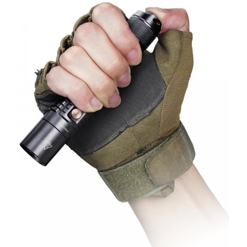 Управление фонарем производится с помощью двух клавиш. Та, что расположена возле «головной» части, выполнена из анодированной нержавеющей стали и позволяет поочередно переключать все режимы работы. К слову, в эту же кнопку встроен индикатор уровня заряда (пара диодов зеленого и красного цвета). Торцевая кнопка прорезинена и предназначена для быстрого доступа к режимам «Стробоскоп» и «Турбо». За счёт наличия функции «Памяти», при включении фонаря будет запущен последний выбранный режим работы, что позволит вам не настраивать Fenix UC35 V2.0 каждый раз при запуске, а просто пользоваться им с максимальным комфортом.
