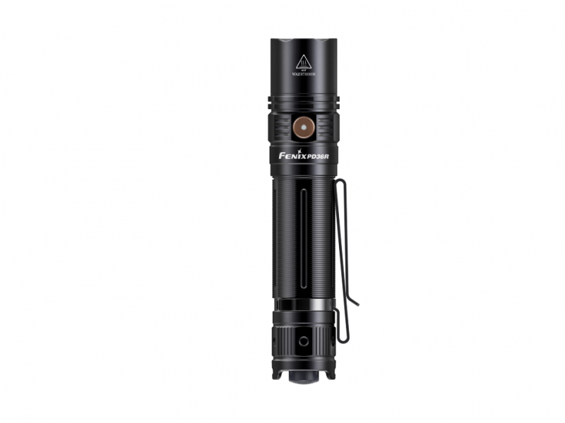 Модель Fenix PD36R имеет длину 136 мм. Диаметр его корпуса в зоне головы составляет 26,4 мм, а в зоне хвоста - 25,4 мм. Фонарь без аккумулятора весит 85 г. Он продается вместе с чехлом для безопасного хранения и транспортировки. Также в комплекте есть темляк и двухпозиционная металлическая клипса.Особенности: