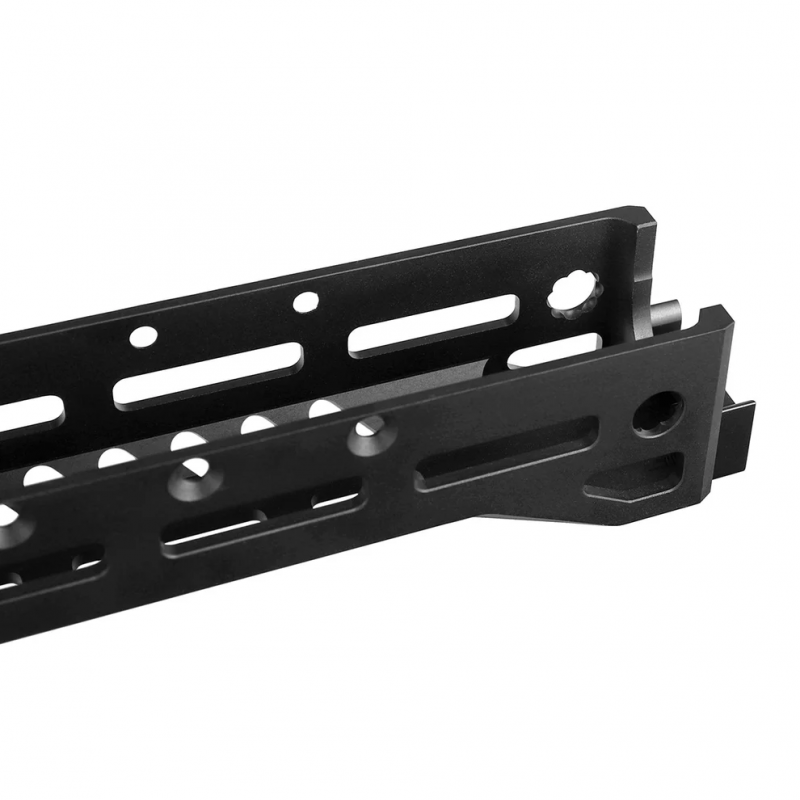 Планка Picatinny (9 шагов), девять пазов M-LOK и четыре QD-отверстия дают широкие возможности для аксессуаров — коллиматоры, фонари, рукоятки и быстросъёмные антабки устанавливаются без лишних доработок. Простая установка и совместимость с основными моделями АК делают цевьё практичным выбором для охоты и прикладного использования.