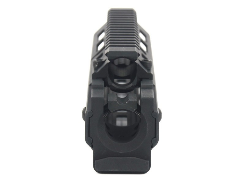 После установки комплект MK1 полностью вывешивает ствол и позволяет устанавливать коллиматорные прицелы и осветительные приборы на планку Picatinny, расположенную над стволом от газовой камеры до конца стойки целика.