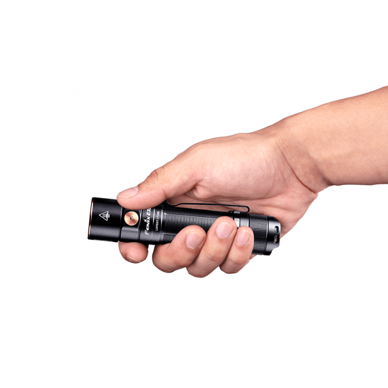 Фонарь модели Fenix E35 V3.0 - это огромный прорыв в области изготовления миниатюрных EDC-приборов. Работая на одной батарее форм-фактора 21700, он даёт световой поток в 3000 люменов, а расстояние действия составляет 240 метров. Такие возможности прибора реализованы благодаря электронике, заключённой в корпусе размером всего 4,65 дюйма. Для управления здесь предусмотрена простая кнопка, при помощи которой можно выбрать шесть режимов яркости. Зарядка посредством USB Type-C.
