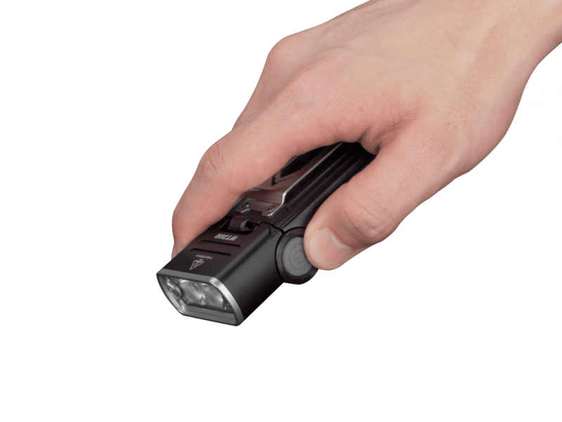 Основной особенностью ручного фонаря Fenix WT20R является состоящий из 2 зон корпус. Голова этой модели может поворачиваться по вертикали на 105_относительно ее хвостовой части. Это дает возможность точно настроить направление луча. Даже если фонарь будет при помощи клипсы закреплен в нагрудном кармане, он все равно продолжит светить в нужную сторону. Эту модель производители предлагают использовать во время работы на различных производствах. Впрочем, хорошие рабочие параметры фонаря вполне подходят и для туристической сферы.