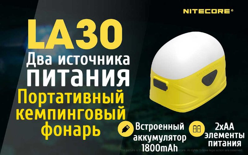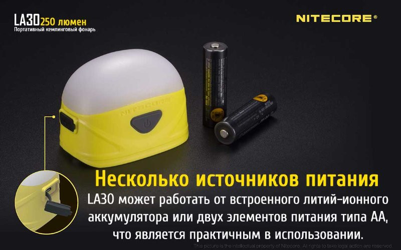 - Nitecore LR30 - это основатель кемпинговой серии, работающий от заменяемых элементов питания типоразмером 18650 и CR123/RCR123.