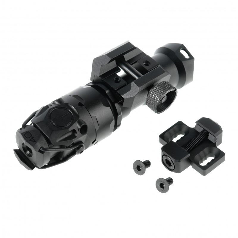 Встроенный адаптер многопозиционного типа позволяет изменять угол крепления, предлагая пользователю различную конфигурацию для установки. Это добавляет удобства и универсальности в использовании, позволяя адаптировать фонарь под конкретные задачи и оборудование. Возможность закрепить устройство под любой стороной вашего ИК прибора повышает функциональность и комфорт эксплуатации.