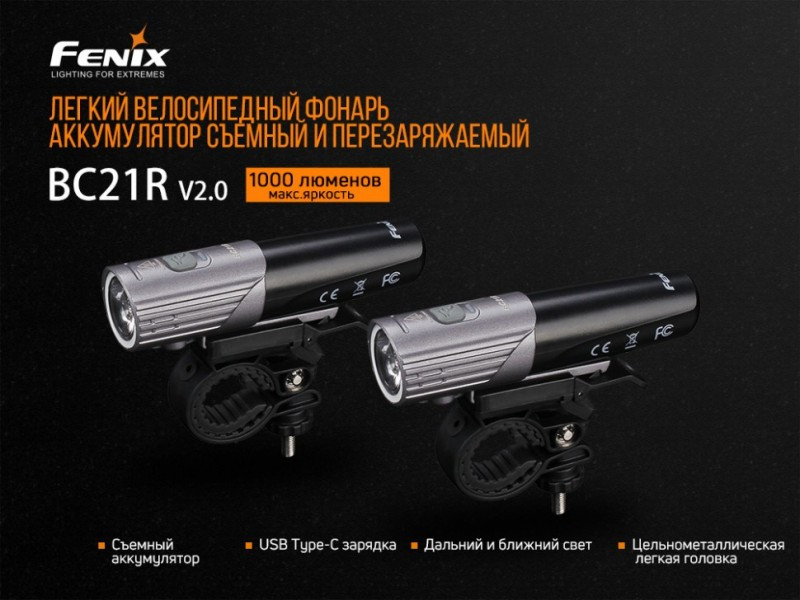 Fenix BC21R V2.0 - новинка, произведенная известной китайской фирмой. Модель получила улучшение относительно предыдущей версии BC21R. В частности, увеличился показатель светового потока прибора. Яркость велосипедной фары достигает 1000 люмен против 880 люмен прежней модели. Также уменьшился вес фонаря. Если модель BC21R весила чуть более 90 грамм, то новый прибор весит 67 грамм. Также BC21R V2.0 может похвастаться цельной металлической основой. А еще велосипедная фара поддерживает зарядку при помощи USB Type C. Наконец, он заряжается в течение двух с половиной часов, в то время как у прежней версии на это уходило четыре часа.