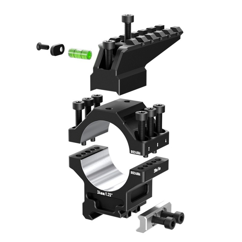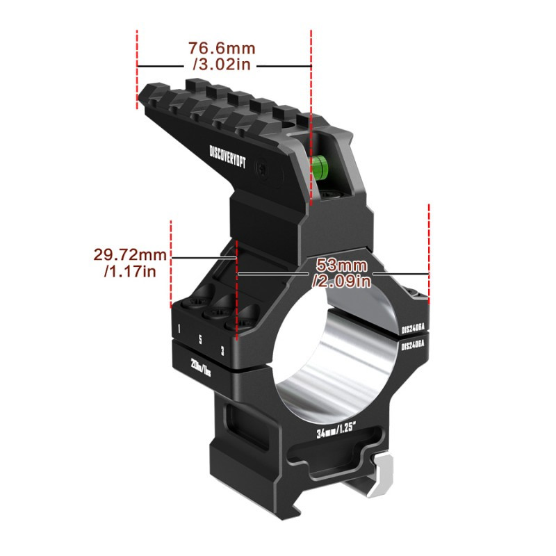 Кольца Discovery 34мм усиленные высокие (7075) с планкой и уровнем под Picatinny