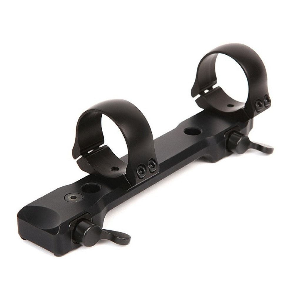 Быстросъемный кронштейн с запирающим устройством MAKmasterLock немецкого производителя МАК. Предназначен для установки прицелов с диаметром центральной трубки мм, высота от оружия до оптической оси прицела составляет примерно 34,5 мм. Подходит для охотничьего карабина Tikka T3. Кронштейн с рычажной фиксацией устанавливается на оружие без использования дополнительных креплений.