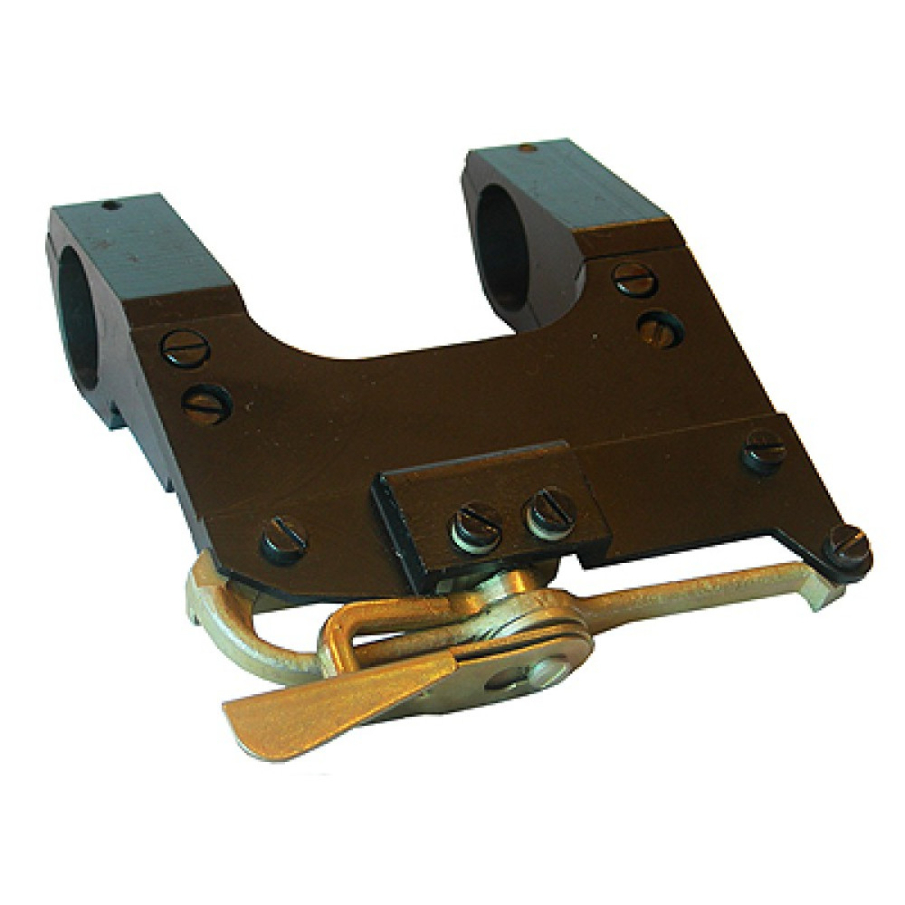 Кронштейн бокового крепления прицелов на карабин "ОП-СКС", имеющий посадочный диаметр под прицел - 25,4 мм с направляющей типа 'ласточкин хвост' - 100х14х4мм. Высота установки от оптической оси прицела до оси "ласточкиного хвоста" - 65 мм. Комплектуется планкой (вес в технических характеристиках указан с планкой).