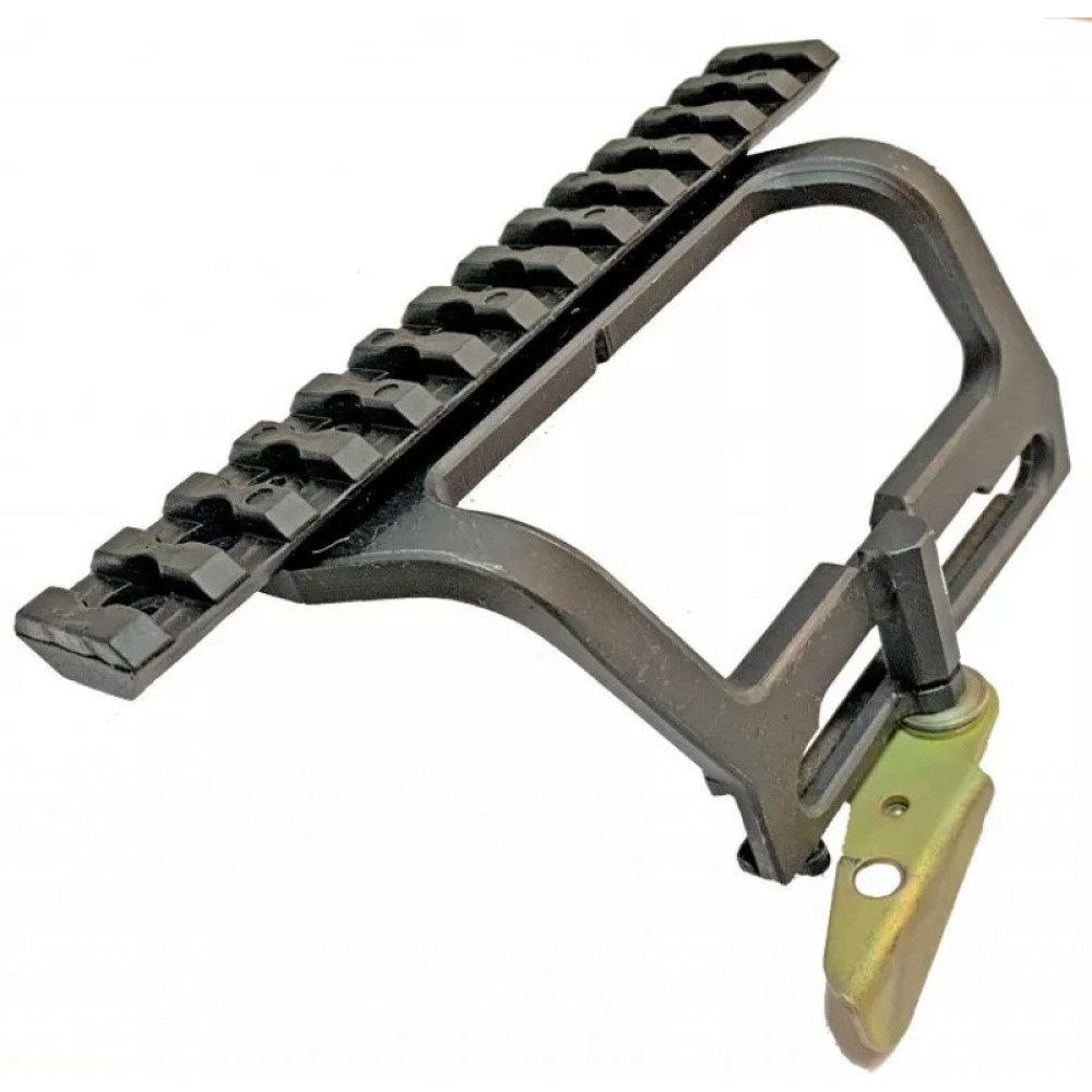 - Верхняя часть оснащена планкой Weaver на 13 слотов, общей длиной 13,5 см, с возможностью регулировки положения на базе с шагом в 1 см.