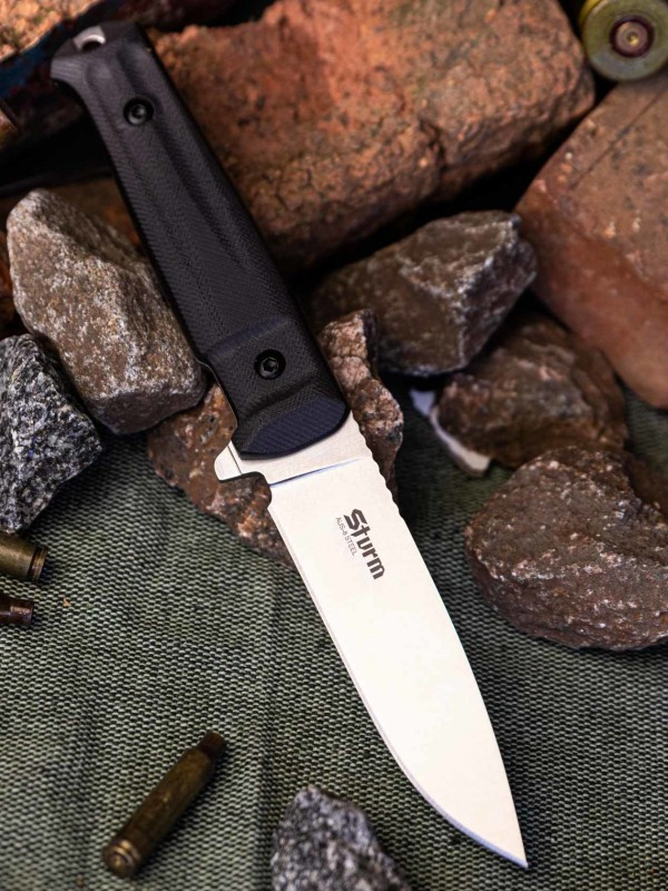 Sturm изначально разрабатывался по запросу наших партнеров из Германии. Европейцам вообще очень нравится тактическая линейка от Supreme, но длина клинка более 12 см не позволяет свободно пользоваться такими ножами за пределами собственных угодий.