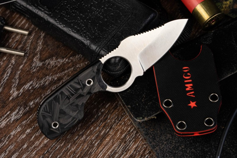 Серия Amigo специально разработана для ношения на шее. При разработке ножей серии инженеры Kizlyar Supreme старались учесть самые главные факторы для шейного ножа.