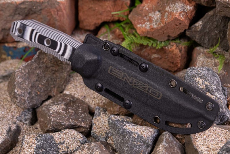 Клинок из высококачественной стали D2 с высокой твердостью, эргономичная рукоять из G10 и чехол из Kydex с переставляемой клипсой - все это совмещает в себе - модель Enzo.