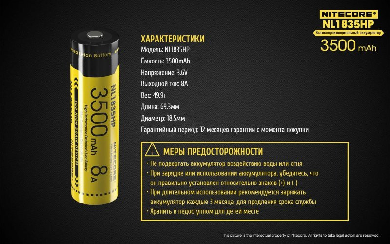 Описание аккумулятора Nitecore NL1835HP, 18650, 3500mAh: