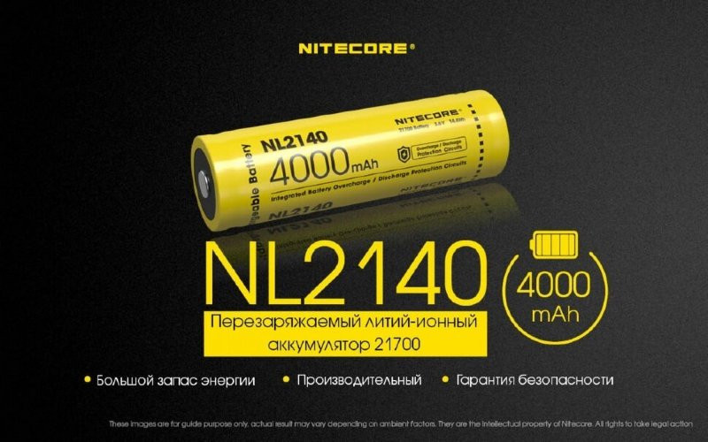 Описание аккумулятора Nitecore 21700 NL2140 3.6V 4000mAh, защищенный: