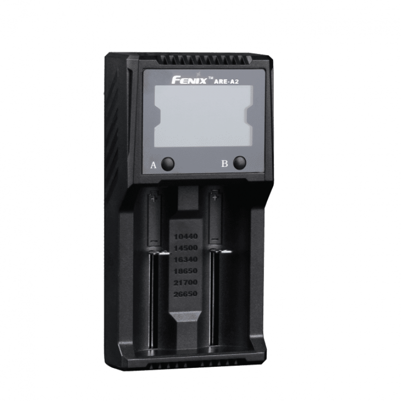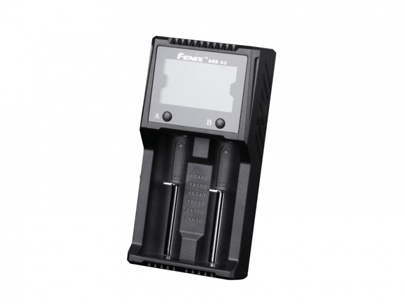 Модель Fenix ARE-A2 предназначена для зарядки аккумуляторов с литий-ионным, никель-кадмиевым или никель-металлгидридным электролитом. Это большой количество элементов питания различных форматов, среди которых популярные 18650. 14500, АА, ААА и другие. Каналов для зарядки в этой модели два, и они сделаны раздельными, что позволяет владельцу устройства заряжать одновременно разные по типу аккумуляторы. Нужный режим работы Fenix ARE-A2 подбирает самостоятельно в автоматическом режиме. На специально встроенном дисплее пользователь видит всю актуальную информацию о своих элементах питания: текущий уровень заряда, время зарядки, напряжение и тип аккумулятора. Данные сменяют друг друга поочередно при нажатии на кнопку для соответствующего канала. При желании, дисплей можно отключить. Для этого кнопку нужно подержать нажатой немного дольше.