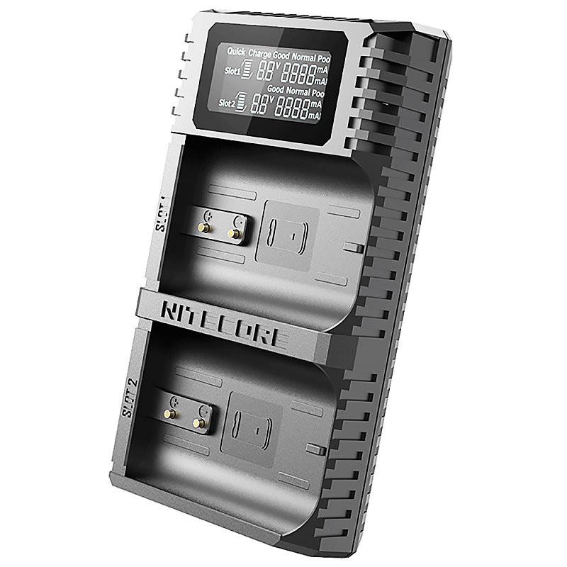 Среди большого ряда приборов для зарядки, UHX1 PRO отличается одной очень практичной функцией, а именно - быстрой зарядкой по технологии Quick Charge. Благодаря предоставленной возможности, зарядка аккумулятора фотоаппарата, при надлежащем напряжении, можно зарядить в 2 раза быстрее аналогов. Максимальный ток зарядки 1200mA.Также стоит отметить и хорошее практичное решение, вместо встроенного в зарядное устройство кабеля, сделать переход с помощью обычного кабеля microUSB -> USB. За счет такого внедрения, часто используемый аккумулятор можно зарядить с помощью UHX1 PRO, используя любый портативный источник питания: солнечные панели, Power Bank, автомобильные адаптеры и другие.Два канала для зарядкиКомпания разрабатывает зарядки, которыми можно было бы пользоваться в любых условиях, и не зависеть от источника питания 220В, но и так, чтобы это было максимально быстро и безопасно.При сравнении с аналогичными зарядными устройствами для фотоаппаратов, UHX1 PRO отличается значительно увеличенным дисплеем, который может поместить информацию сразу о двух зарядных процессах, раньше такой возможности не было.