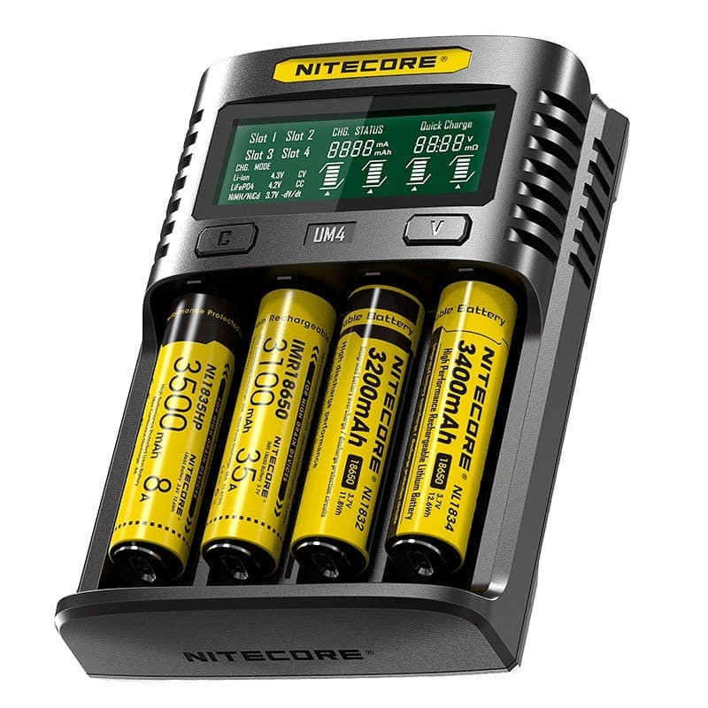 Новая модель зарядного устройства поддерживающего быструю зарядку - Nitecore UM4. Представленная новинка предусматривает одновременную зарядку сразу четырех аккумуляторов, разного типоразмера и емкости. Инновационное внедрение в зарядное устройство технологии Quick Charge 2.0, позволит пользователю значительно уменьшить время ожидания заряда требуемого элемента питания. С помощью данной технологии, устройство Nitecore UM4 может заряжать с исходящим током в 1.5А на один слот, также максимальный ток будет доступен и для двух аккумуляторов. Также благодаря большому исходящему току, зарядка элемента питания до 80% емкостью 3500mAh займет всего лишь 2 часа.