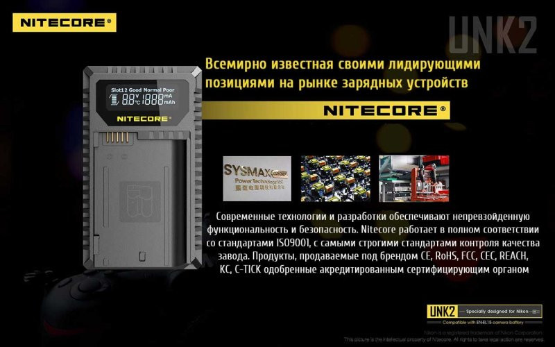 Зарядное устройство Nitecore UNK2 хоть и имеет небольшие размеры, но даже в такой малогабаритный корпус можно поместить самые последние, инновационные технологии, обеспечивающие безопасность такие как защита от обратной полярности и короткого замыкания.