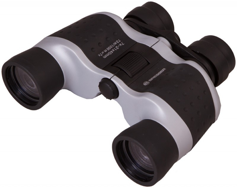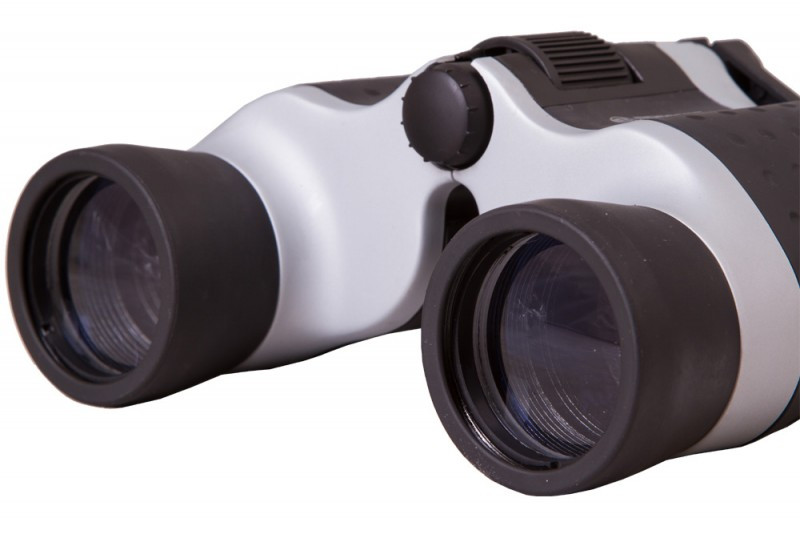 Бинокль создан на базе призм Porro и хорошо собирает свет. Стеклянная оптика передает все детали предельно четко и ясно, полное просветление убирает отражения и засветку. Корпус изготовлен из пластика, но в боковые части встроено резиновое покрытие, которое улучшает захват бинокля в руках. Резкость регулируется центральным колесом фокусировки, а межзрачковое расстояние – перемещением оптических труб.