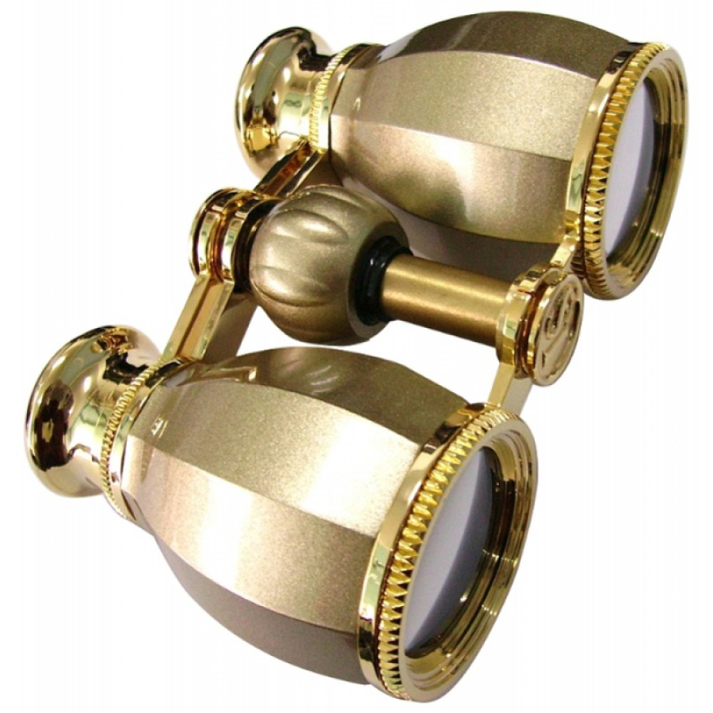 Бинокль Veber Opera БГЦ 4х30 – театральный бинокль благородного цвета шампани с блестящей отделкой под золото. Подобное цветовое сочетание очень изящно и придает модели дорогой вид. Окуляры бинокля напоминают по форме колокольчики, а барабан центральной фокусировки – крупную жемчужину. Такой необычный бинокль всегда будет в центре внимания и станет для вас замечательным аксессуаром.