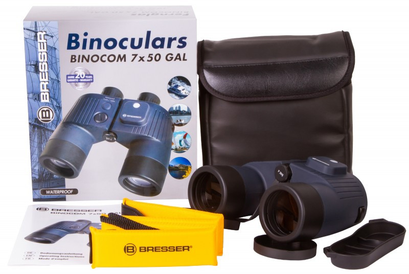Бинокль Bresser Binocom 7x50 GAL хорошо проявит себя в полевых наблюдениях и в наблюдениях вблизи воды. Это герметичный, полностью водозащищенный и азотозаполненный бинокль со стеклянной просветленной оптикой. Также в нем есть встроенный компас и измерительная шкала для определения расстояния до объекта и его высоты. Кроме того, в комплекте идет специальный плавающий ремень: если бинокль случайно упадет в воду, он не даст ему затонуть и укажет на место, где искать пропажу.