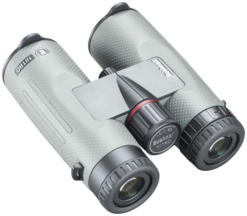 Бинокль Bushnell Nitro 10x42 имеет нестандартное цветовое решение. Его корпус окрашен в светло-серый цвет, имитирующий стальную поверхность. С одной стороны, этот бинокль выделяется среди обычных биноклей, а с другой стороны, остается достаточно незаметным на фоне природных ландшафтов. Но кроме дизайна биноклю есть чем похвастаться: внутри установлена низкодисперсионная ED-оптика, есть фазовая коррекция, многослойное просветление, а также два типа покрытий линз. Бинокль является всепогодным и не боится кратковременного погружения в воду.