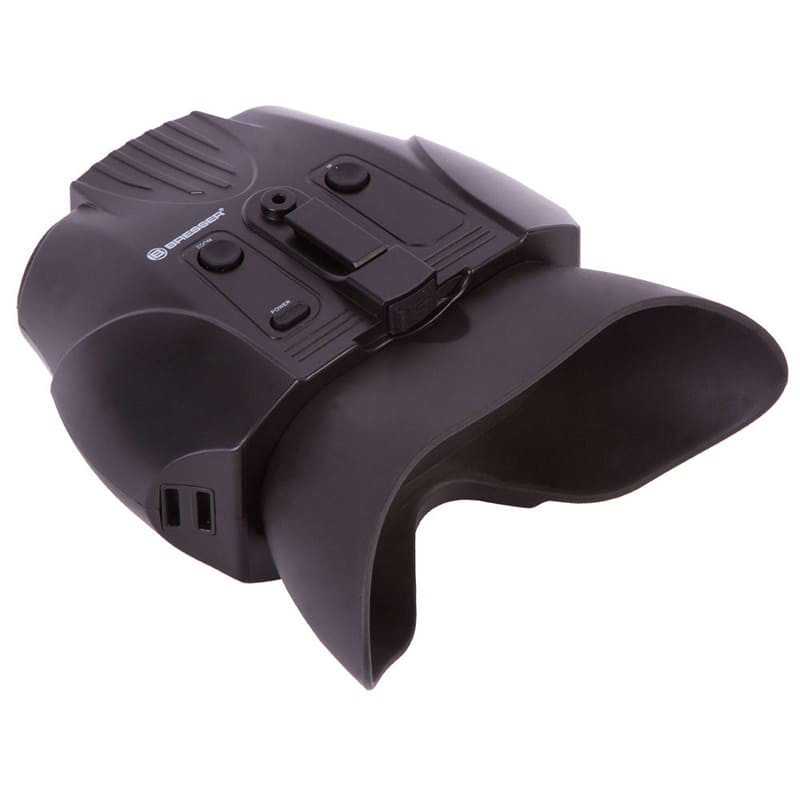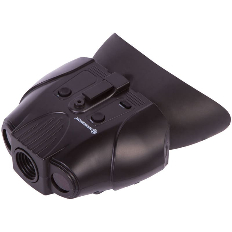 Цифровой бинокль Bresser комплектуется маской, с помощью которого можно носить прибор на голове, освобождая этим руки. Он не боится засветок, так как работает за счет матрицы, ограничивающей световой поток. За счет отсутствия кратности прибор можно использовать при движении в условиях низкой освещенности, но при этом есть цифровое увеличение в 2 раза. Компактный, удобный прибор для туризма, охоты и охраны территорий.