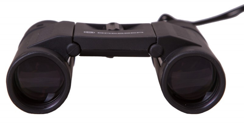 Эта модель рекомендована для использования в дневное время при хорошей освещенности, причем наблюдать можно не только на воздухе, но и в помещении - благодаря очень маленькой дистанции ближнего фокуса. Корпус бинокля пластиковый, в центральной его части расположен рельефный барабан системы фокусировки.