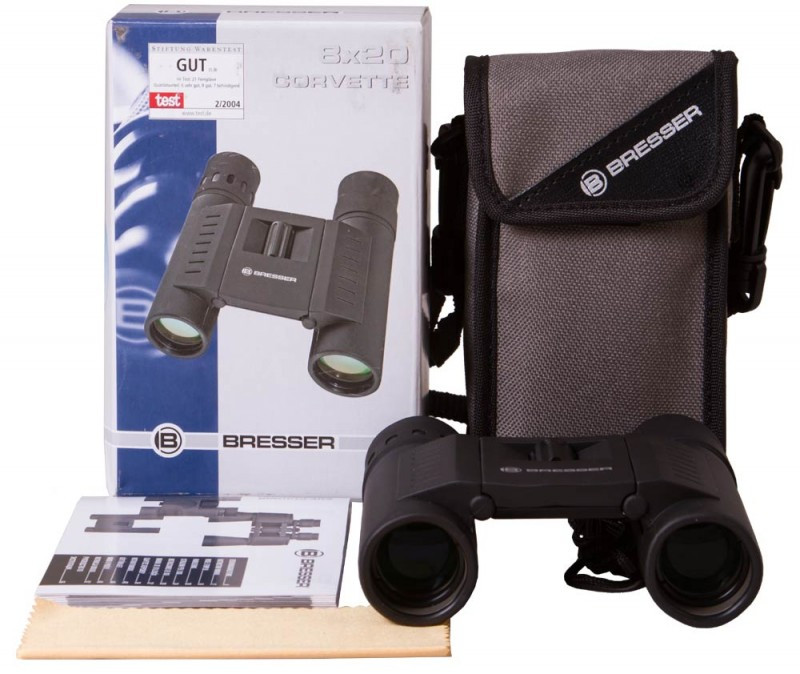 В поисках бинокля, в котором смогут сочетаться отличные оптические характеристики и небольшие размеры, вы точно встретите Corvette 8x20 LE w. C. от Bresser. Этот бинокль построен на компактных roof-призмах («с крышей») из высококачественного стекла BaK-4 с многослойным просветлением. Такое сочетание позволило сохранить небольшие размеры и вес корпуса при высоком качестве изображения.