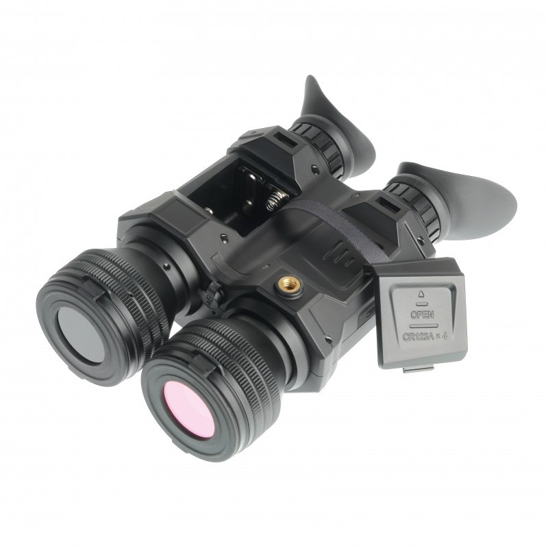 Бинокль питается от 4 батарей CR123A(3V) или аккумуляторов CR123A (3.7V), которые приобретаются отдельно. Прибор отличается длительным временем работы и может непрерывно эксплуатироваться около 5 часов (при комнатной температуре от полностью заряженных батарей).
