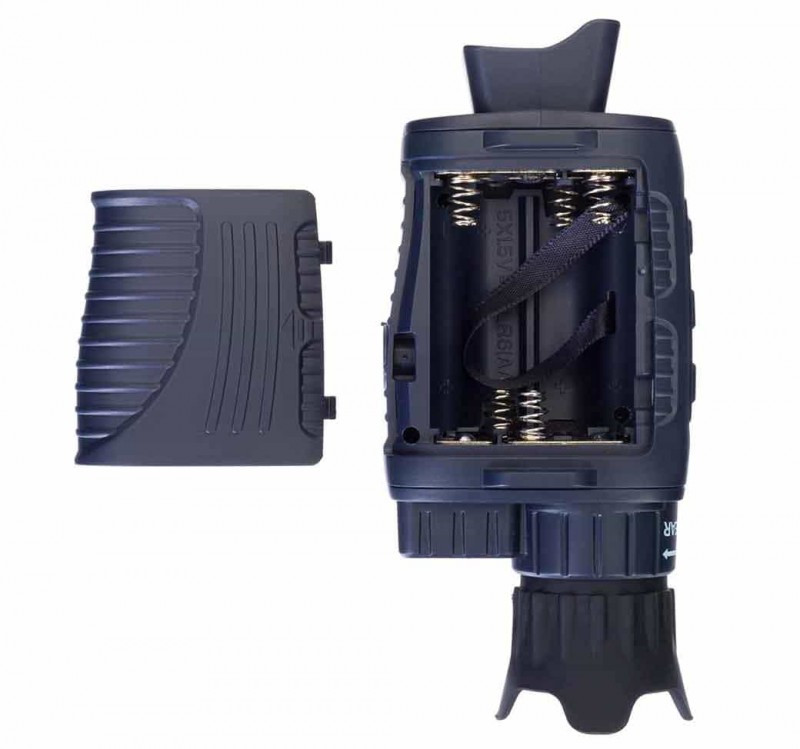 Монокуляр удобен в использовании в полевых условиях, так как корпус выполнен в эргономичном формате, а кнопки ложатся точно под пальцы. Есть защита от влаги и пыли. Питание осуществляется от стандартных батареек, одного заряда которых хватает на период от 4 до 10 часов непрерывной работы (время работы зависит от того, как интенсивно использовать ИК-подсветку). Настольный штатив, включенный в комплект, упрощает проведение длительных наблюдений и видеозапись, так как позволяет получать более стабильную картинку.