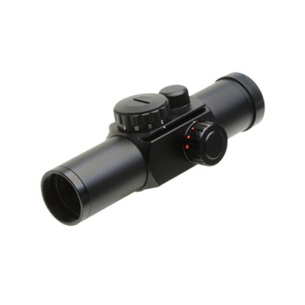Прицел представляет собой трубку 30 мм, посередине которой размещен отсек с регулировочными винтами, батарейным отсеком и маховиком изменения размера точки. Питание осуществляется за счет батареи CR2032. Яркость точки настраивается в зависимости от времени суток, всего 11 степеней.