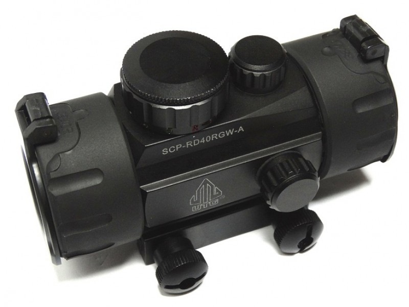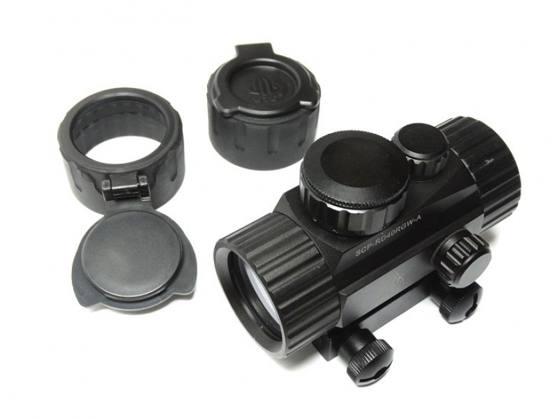 Коллиматорный прицел SCP-RD40RGW-A самый бюджетный вариант из серии линейки коллиматоров от Leaper. При этом прицел обладает рядом преимуществ, которые имеют более дорогие модели. Одно из удобств для охотников является возможность выбора цвета прицельной точки. Для более яркого дня чаще используется красный цвет, в темное время суток для снятия напряжения с глаз удобнее работать с зеленым. Разные варианты цветов пригодятся при контрастном фоне окружающей среды.