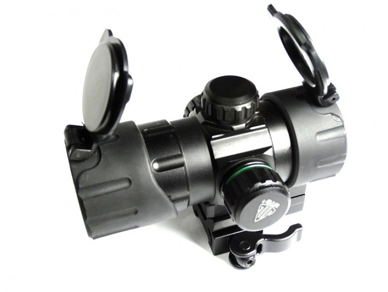Коллиматорный прицел Leapers UTG 1х38 4.2" закрытого типа имеет 2 цвета прицельной метки - зеленую и красную.Прицел устанавливается на планку Weaver с помощью быстросъемного кронштейна,кронштейн имеет дополнительную вставку для увеличения высоты коллиматора.Изменение яркости осуществляется плавным вращением барабана.Наличие откидных крышек позволяет быстро приступить к прицеливанию,при желании крышки можно снять с прицела.