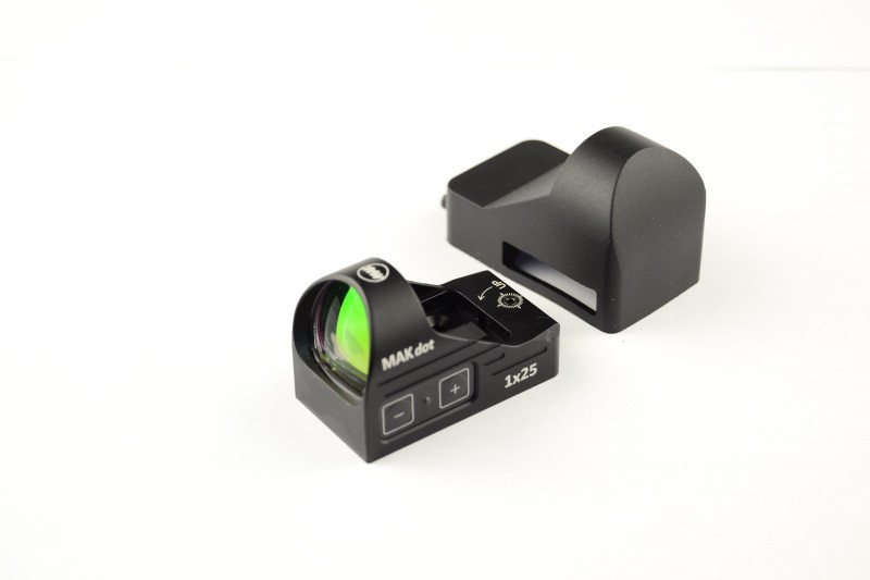 Коллиматорный прицел MAKdot 1x25 высококлассный открытый коллиматорный прицел с яркой прицельной точкой размерностью 3 МОА.