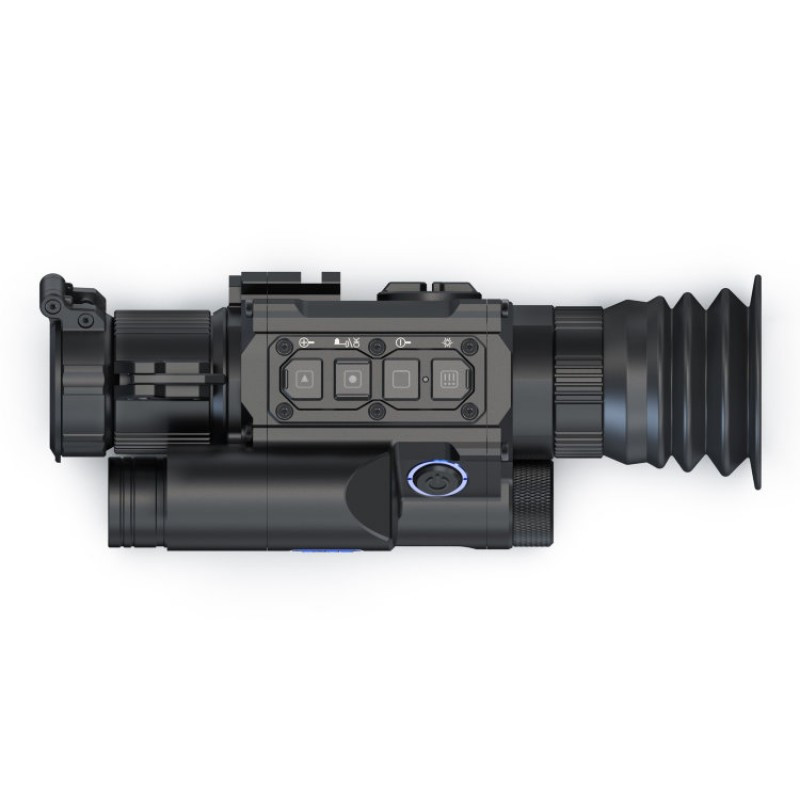 Цифровой прицел «день-ночь» NV008S LRF остался таким же компактным, но стал ещё удобней в управлении, чем его предыдущая P-версия. Верхняя центральная панель управления подходит под любую руку — как правше, так и левше, а бесшумные кнопки подписаны белой краской и «отмечены» соответствующим тиснением — для понятной визуализации на свету и быстрой ориентации в темноте. Откидной рычажок на колесе фокусировки работает как упор под большой палец на колесе-трансфокаторе дневных прицелов, а сам объектив закрывается откидной пластиковой крышкой. Изменилась и крышка блока мультимедиа: она легко вращается без монеты или отвёртки, просто двумя пальцами.