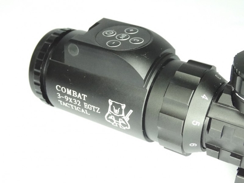 Прицел для оружия Combat 3-9x32 EGTZ американской разработки снова удивил широкомасштабным увеличением с 3-х до 9 раз, наличием нивелира на корпусе, удобным кнопочным управлением подсветками прицела и нивелира, а также многими другими преимуществами и достоинствами. Например, наличием планок Weaver в боковом исполнении для крепления дополнительных ИК-фонарей или других аксессуаров.