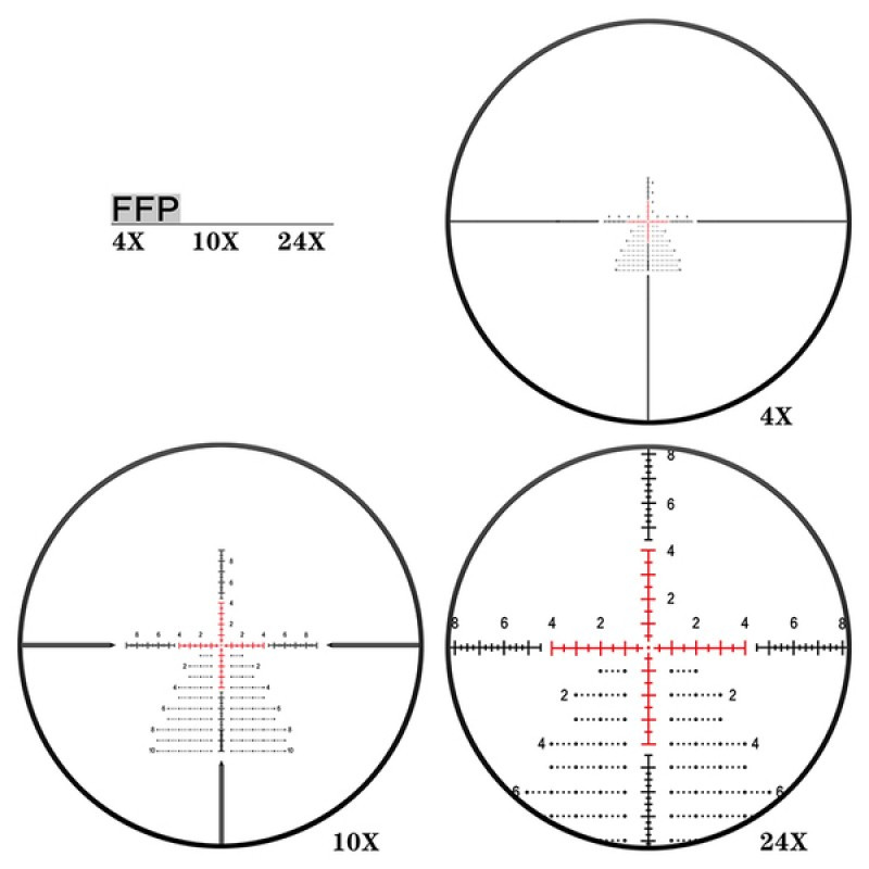 Гравированная сетка в первой фокальной плоскости сохраняет масштаб при смене увеличения, что облегчает расчёт поправок и применение методов удержания. Подсветка центральной марки улучшает видимость сетки в условиях слабой контрастности и позволяет быстро ориентироваться на цель без дополнительного оборудования. Такая комбинация делает прицел удобным инструментом для точной стрельбы на неизвестных дистанциях и при многоступенчатой корректировке выносов.