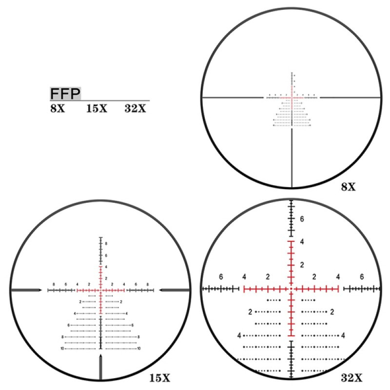 Сетка, нанесённая в первой фокальной плоскости, сохраняет свою метрическую соразмерность при любых изменениях увеличения, что упрощает расчёт поправок и дистанций без дополнительной перестройки. Это даёт стрелку возможность быстро переводить прицел между увеличениями и оставаться уверенным в точности прицеливания, ведь относительные размеры на сетке не меняются. Для тех, кто привык работать с миллирадианами, такая схема предоставляет предсказуемую и удобную систему корректировок вне зависимости от выбранной кратности.