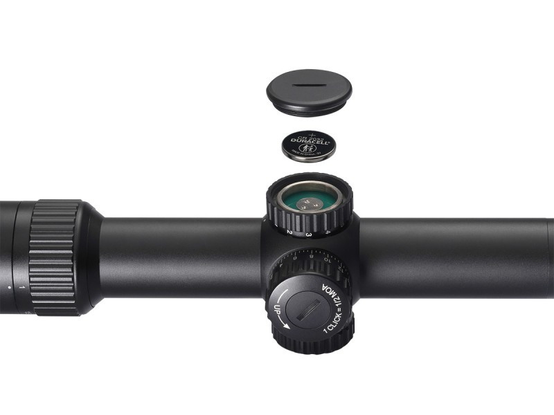 Подсветка центральной точки позволяет настраивать уровень яркости из 11 возможных уровней. Запитывается от простой батарейки CR2032, подсветка обеспечивает идеальную видимость как днем, так и ночью, что обеспечивает намного больше возможностей для успешной стрельбы независимо от времени дня.