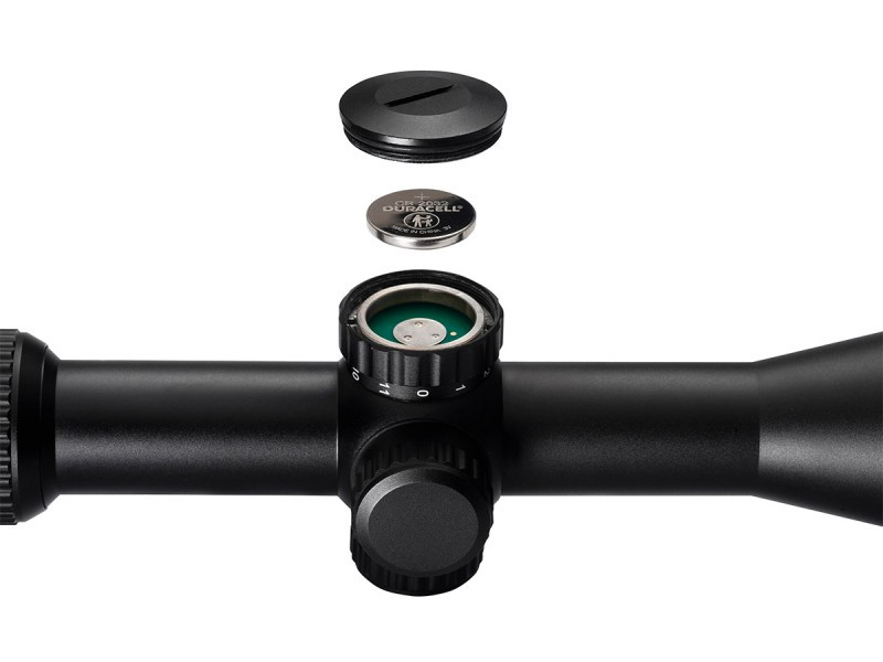Центральное перекрестие прицела подсвечивается красным светом с 11 уровнями интенсивности, которые можно настроить для различных условий освещения. Это позволяет стрелку легко адаптироваться к смене времени суток или погодным условиям, обеспечивая точность прицеливания и в сумерках, и на ярком солнце.