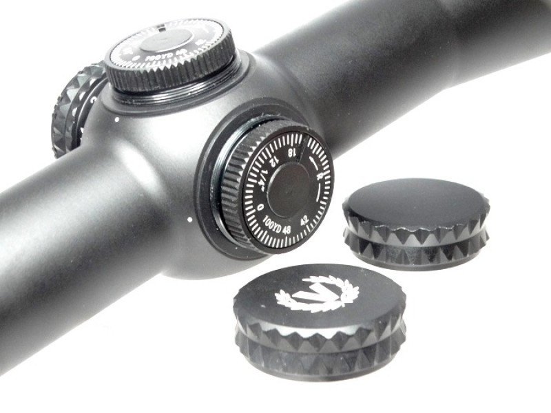 - Винты поправок закрытого типа. При прохождении через сложные участи местности выступающие маховики могут быть случайно задеты, это приведет к изменению положения сетки и неточному выстрелу. Накручивающиеся крышки исключают эту проблему, а также защищают винты от грязи и влаги. Герметичность обеспечивает резиновая прокладка.