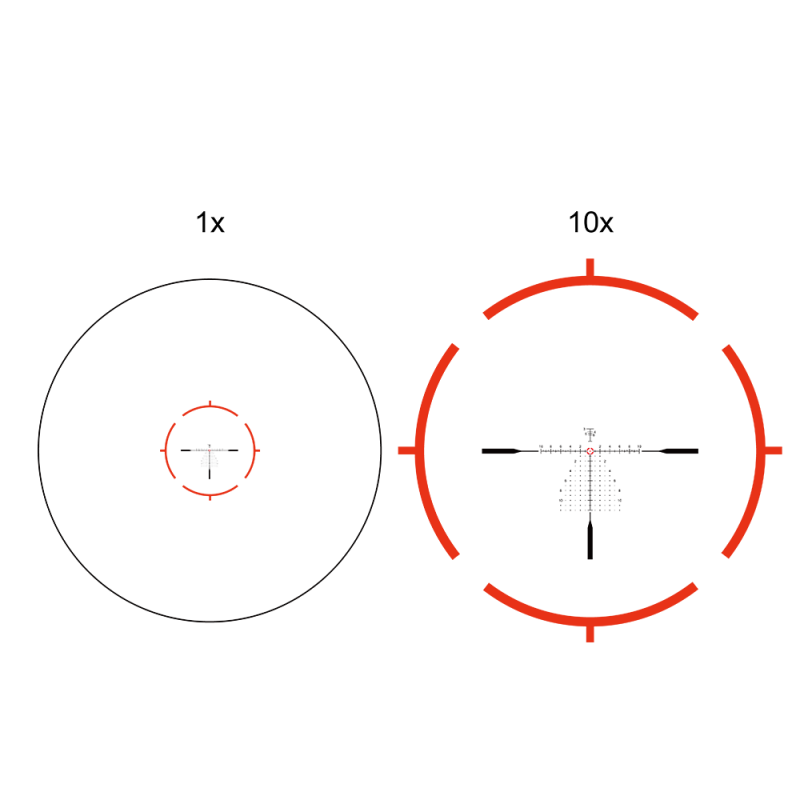Continental x10 обеспечивает увеличения от 1x до 10x, что позволяет легко адаптироваться к различным условиям стрельбы, от ближних до дальних дистанций. Это универсальное решение для охотников, которым нужно быстро переключаться между целями на разных расстояниях.