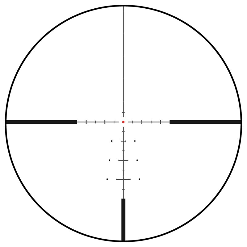 Выгравированная вторая фокальная плоскость сетка VECON-CDM с красной подсветкой гарантирует точность в условиях плохой видимости. Она не перекрывает цель, улучшая концентрацию стрелка. Шесть режимов яркости подсветки позволяют адаптировать прицел под любые ситуации.