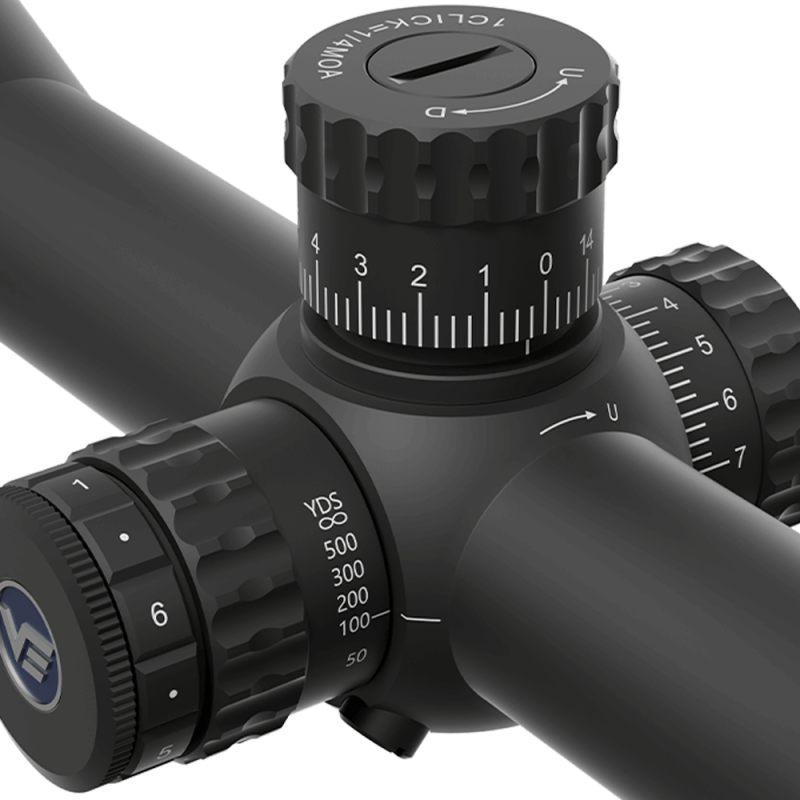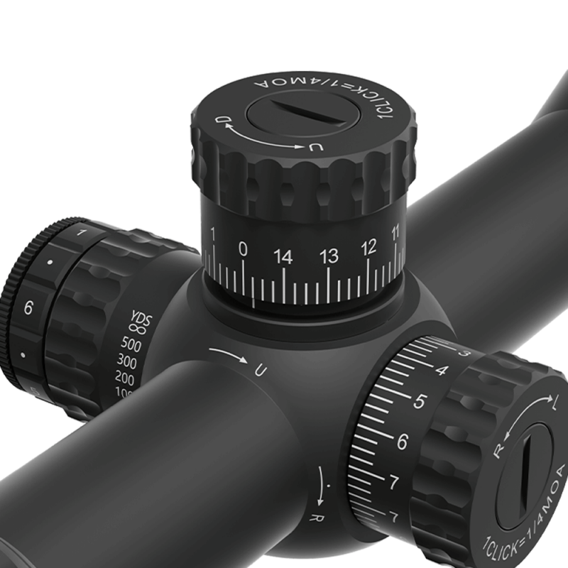 Прицельная сетка VSE-5 MOA в первой фокальной плоскости обеспечивает точные расчеты при изменении увеличения. Это крайне удобно для стрельбы на большие дистанции, так как сетка масштабируется вместе с изображением, сохраняя пропорциональность и точность меток. Пользователь может быть уверен, что при любом изменении масштаба его прицеливание останется неотъемлемо точным.