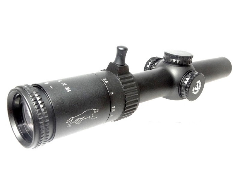 Прицел 1-4х24 серии «Wolf» зарекомендовал себя как лучший в соотношении цена-качество из многообразия оптики под загонную охоту. В 2017 году был изменен дизайн прицела и усовершенствовано кольцо регулировки кратности.