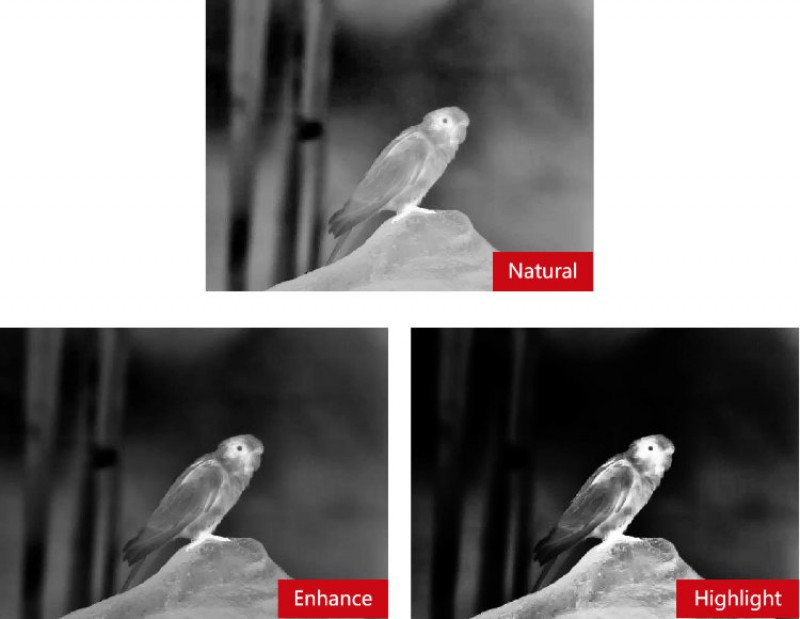 Шесть цветовых палитр («Adjustable Red Hot», «Black Hot», «Iron Red», «White Hot», «Blue Hot» и «Green Hot») позволят выбрать оптимальный режим отображения для любых задач на разных дистанциях, независимо от видимости.