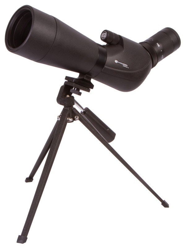 Окуляр трубы установлен наклонно, поэтому в нее удобно изучать объекты, расположенные высоко. Оптические элементы размещены по Porro-схеме, сделаны из стекла BaK-4 и полностью просветлены. Благодаря этому зрительная труба передает четкую и ясную картинку даже в сумерках. Так как стартовое увеличение относительно небольшое (15 крат), зрительную трубу необязательно устанавливать на штатив, достаточно обеспечить ей надежный упор - подойдет ветка дерева или перила террасы. Тем не менее, в комплект поставки включен небольшой настольный штатив.