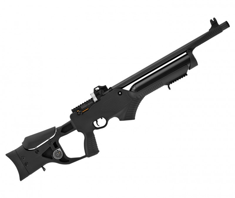 Винтовка отличается высокоточным нарезным стволом, выполненным из стали. Движущая сила винтовки - резервуар сжатого воздуха объемом 500 см3, установлен манометр для контроля стрелком уровня давления. Полный резервуар позволит выполнить около 120 выстрелов.